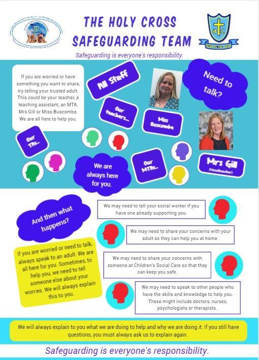 Holy Cross School is committed to safeguarding and promoting the welfare of children and young people and expects all staff and volunteers to share in this commitment. We are fully committed to ensuring that consistent effective safeguarding procedures are in place to support our families, children, and staff at our school and work closely with relevant agencies.